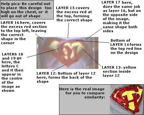 ** Now I will guide you on how to create the image on his chest. For this section you will need to use the help picture above. Follow the instructions carefully and accurately,
